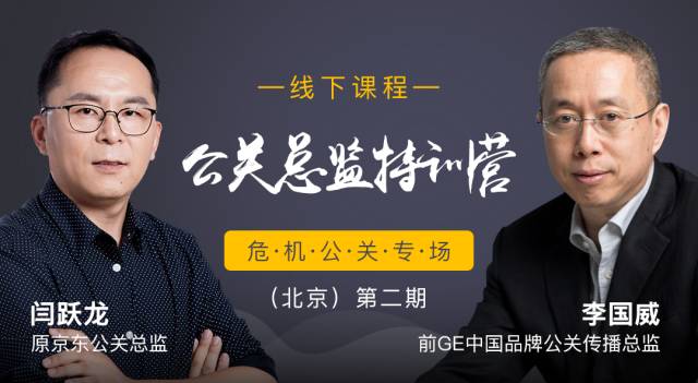 現在,我和品牌公關資深專家,前京東集團公關總監閆躍龍老師將在北京開一場線下課《公關總監特訓營 · 危機公關專場》。