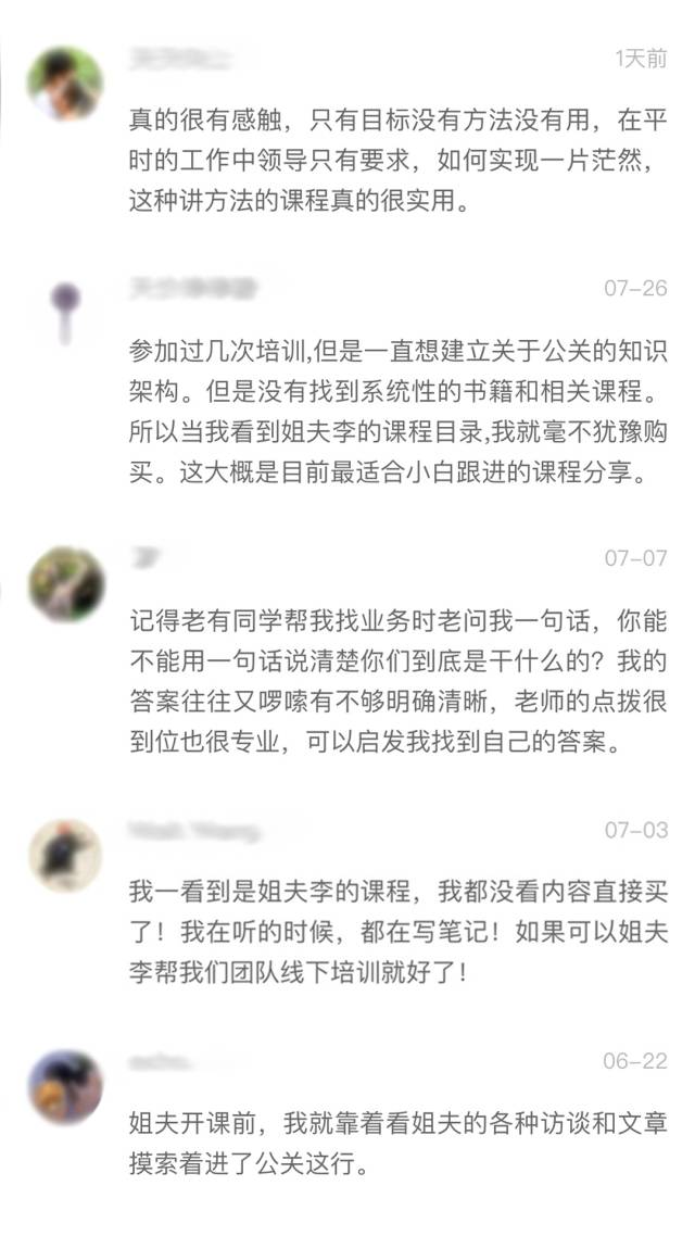 以下是線上課學員對李國威老師《品牌公關·工作指南》系列課程的評價: