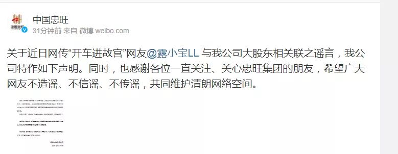 被曝與開奔馳進故宮女博主炫耀的美國大宅相關的忠旺集團也發聲明稱與該女子無關聯。