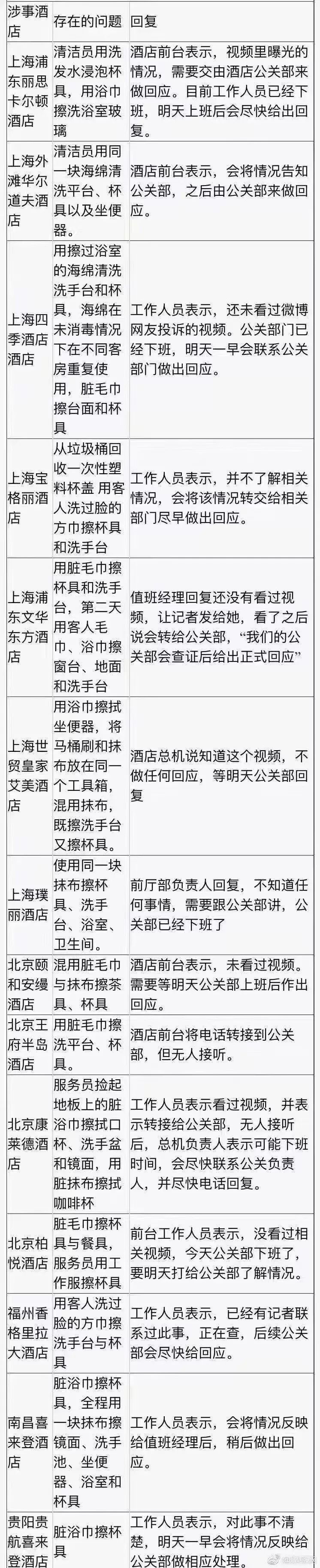 15日中午,媒體報道了第一個做出正式回應的酒店—福州香格里拉酒店,最初是酒店公關(guān)部對澎湃新聞、新浪財經(jīng)等媒體的電話回應: