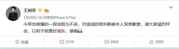2、王利芬消費逝者后的回應態度。今年1月份茅侃侃不幸去世后,王利芬在公眾號寫了一篇文章收獲10w+,這是她第一個10w+,頗有些得意忘形,被人痛罵消費逝者吃人血饅頭。于是,王利芬通過微博做出了回應。