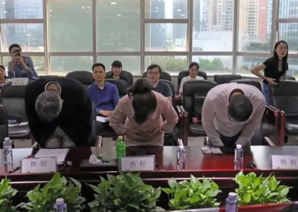 ▲ 攜程CEO及華南區總經理、深圳總經理一行三人鞠躬道歉。