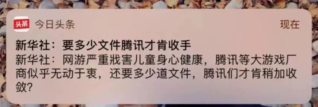 今日頭條隨后發表《關于今日頭條〈網游對少年兒童的戕害〉推送情況的說明》,指出是百度先發的新聞彈窗,用的是《新華社:要多少文件騰訊才肯收手》這個標題,今日頭條值班人員注意到這個新聞,跟推了與百度新聞一樣的彈窗內容。