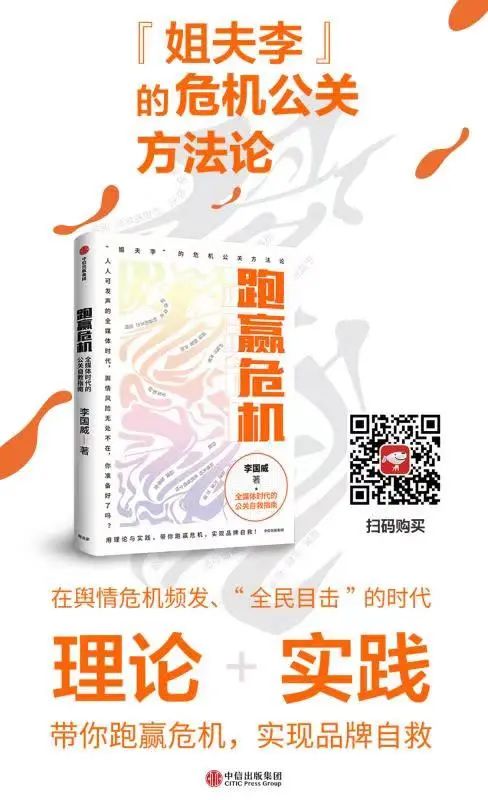 在此聲明,這不是一篇廣告軟文,而是給姐夫李公眾號讀者的硬實惠。現在掃下面的二維碼下單,享受《跑贏公關》新鮮出爐的簽名版全網最低價,優惠時間有限,快行動吧。
