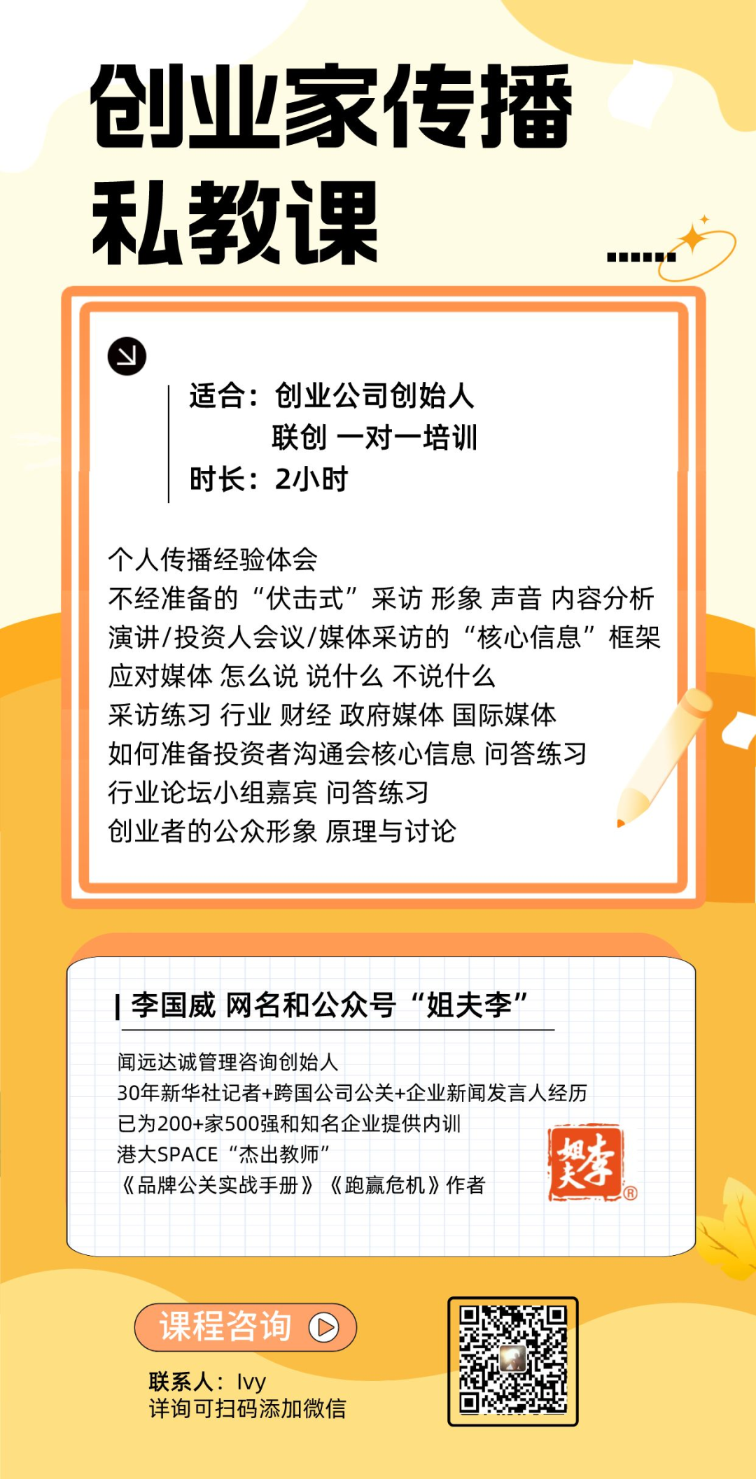 他的學術身份是中國政法大學商學院客座教授、中國人民大學商學院MIB導師、重慶工商大學MBA兼職教授。
