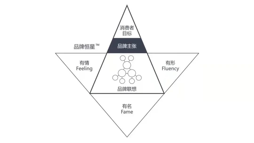 作者王直上來自臺灣,前奧美咨詢董事總經理,在奧美工作了23年。2018年,他在上海建立上緒品牌咨詢,為企業提供品牌規劃咨詢。王直上把品牌里程用“品牌恒星”一個簡單的圖表示:中間三角關于品牌規劃的過程尤為簡單清晰,他認為品牌規劃的基本步驟是通過訪談調查發現用戶/客戶的隱性需求,推導出“品牌主張”(口號+解讀),再以“品牌主張”為基礎確定“品牌聯想”,為品牌設定一個“框框”,進而產生品牌傳播規劃,按照“有名”、“有情”、“有形”三個框架讓品牌在消費者心中產生明確的印象。